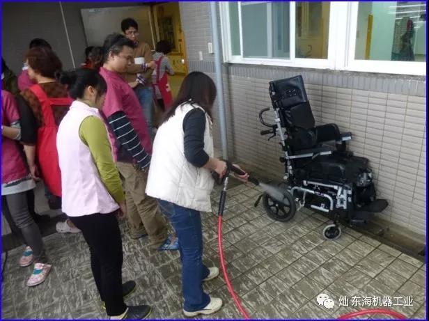 台湾的辅具消毒中心采用了「灿轮椅轮胎清洁机」。